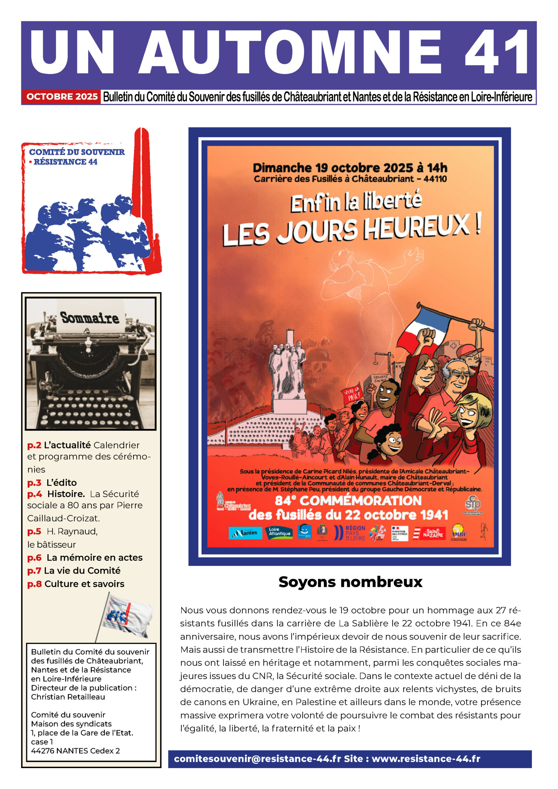 Samedi 18 octobre à 14h30 à Châteaubriant : cérémonies à la stèle de Choisel et au château
