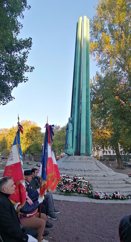 La cérémonie s’est déroulée en deux temps : tout d’abord la partie protocolaire puis une évocation historique et artistique. De nombreuses personnalités étaient présentes : Mme Dominique Yani , sous-préfète accompagnée des responsables militaires et policiers, M. Olivier Chateau, adjoint à la maire de Nantes, Mme Karine Daniel, sénatrice, Mrs. Fabrice Roussel et Karim Benbrahim, députés, M. Julien Bainvel, représentant le Conseil régional, Mme Fabienne Padovani, représentant le Conseil départemental Mme Karin Broermann, consule d’Allemagne.