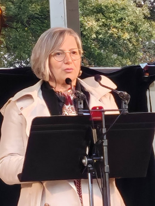 Puis Stéphane Peu, député de Seine-Saint-Denis et co-président avec  Emeline K/Bidi du groupe Gauche démocratique et républicaine (GDR) à l’Assemblée nationale a pris la parole. Il a évoqué, s’appuyant sur « chacune des lettres qu’ils écrivent à leur famille ce 22 octobre 1941, il y a l’amour de la France, la fierté de la justesse du combat mené, la fidélité à leurs idéaux révolutionnaires et l’espoir de lendemains qui chantent pour leurs familles, pour leur pays ». Après s’être félicité de l‘entrée de Missak et Mélinée Manouchian au Panthéon «  rétablissant une réalité historique sur la résistance communiste » il a ajouté, sous les applaudissements du public, que «  Martha Desrumaux, Marie-Claude Vaillant-Couturier et tant d’autres femmes, résistantes communistes, y auraient aussi leur place aux côtés de Geneviève Anthonioz -De Gaulle et Berty Albrecht. » Il a conclu en évoquant les propos et attitudes députés RN  auxquels il ne faut rien céder car «ils sont les héritiers politiques de ceux qui ont désigné les otages, qui ont arrêté les juifs, qui ont fait honte à la France. »