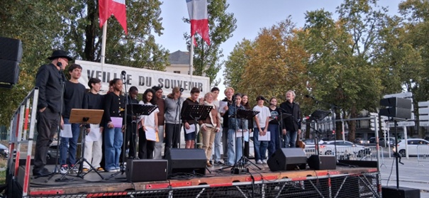 L’évocation artistique intitulée Paix et Liberté  a conclu ce temps d’hommage. Les chorales Méli-Mélo de Châteaubriant, Chœur et Mouvement, EchoSonora de Seine-Saint-Denis, accompagnées des élèves d’une classe de CM2 de l’école La Rose des vents d’Erbray ont transmis leur passion musicale, chanté la victoire de 1945, mêlant des lettres de fusillés et des poèmes  en apportant une note d’espoir pour un monde meilleur.